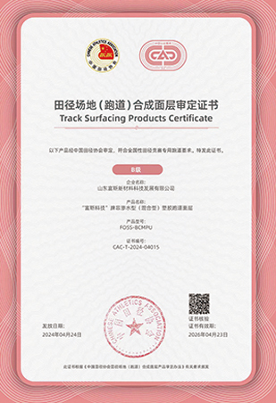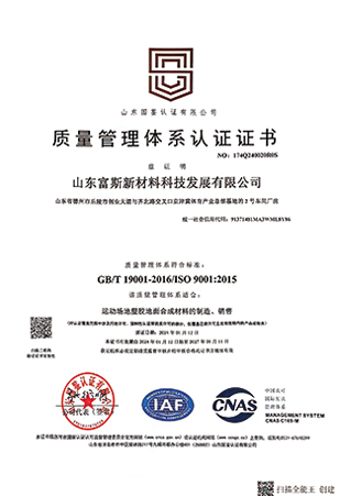 We are a professional sports facility builder that integrates independent research and development, production, and sales. We are a national high-tech enterprise located in the headquarters of the sports industry in the Beijing Tianjin Hebei region of China, with a factory area of approximately 5000 square meters and an annual production capacity of up to 45000 tons. The company attaches great importance to product research and independent innovation, adhering to the concept of "Fusi's products must be high-quality", focusing on the stability, environmental safety, and durability of plastic tracks, stadium materials, and other sports venue paving materials. The products have passed the National Association of Athletics Federations product certification, as well as CEC environmental protection mark product certification, environmentally friendly product certification, and CQC China environmental protection certification; At the same time, it actively participates in industry activities and has become a member of the China Education Equipment In- dustry Association, the China Sports Venue Association, and the China Sports Goods Federation.